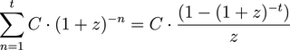 Die jährlichen Zahlungen (C) werden über 10 (t) Jahre mit 4 % (z) auf ihren Kapitalwert diskontiert und summiert.