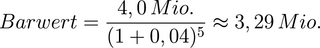 Abzinsung auf Jahr 0 bei 4 %: