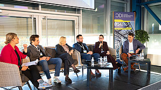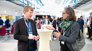 Austausch unter Teilnehmenden am KEI Podium